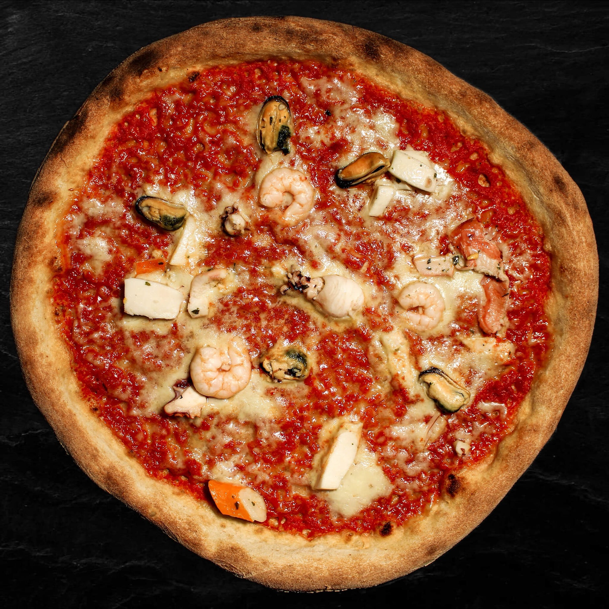 Tomate, Mozzarella, Meeresfrüchte, Knoblauch